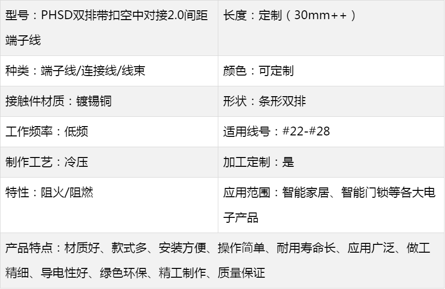 型号:PHSD双排带扣空中对接2.0间距端子线